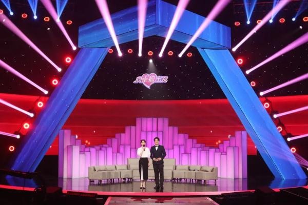新的舞台为内容服务,将完整舞台划分为四个区域,即“委托人区”,“接收人区”,“综合访谈区”和“表演区”。每个区域功能明确,并以具象的“幸福之门”作为舞美物理阻隔,将“委托人区”和“接收人区”的访谈人物,在见不到面的情况下进行呼应式采访,达到观点呼应,抑或冲突的节目效果。