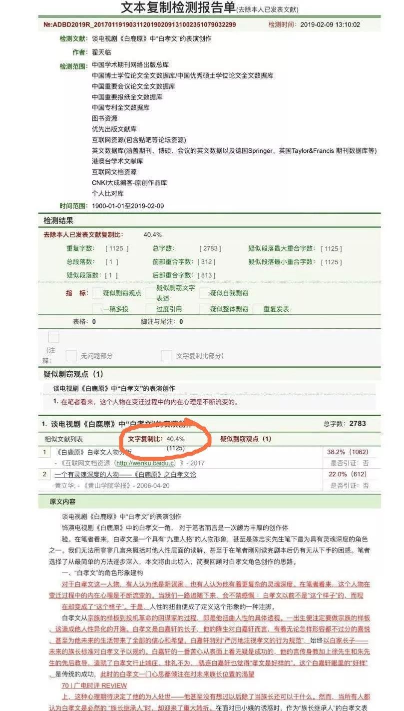一名微博博主发文称翟天临有一篇发表在某学术期刊上的论文曾被上传到知网上,而这篇2783字的论文重复率达40.4%。