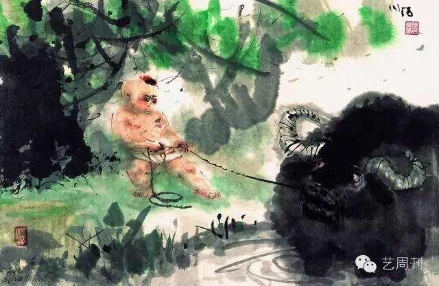 小孩放牛图 傅小石
