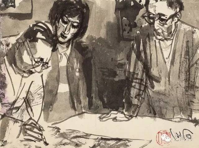 郭沫若观画图 傅小石