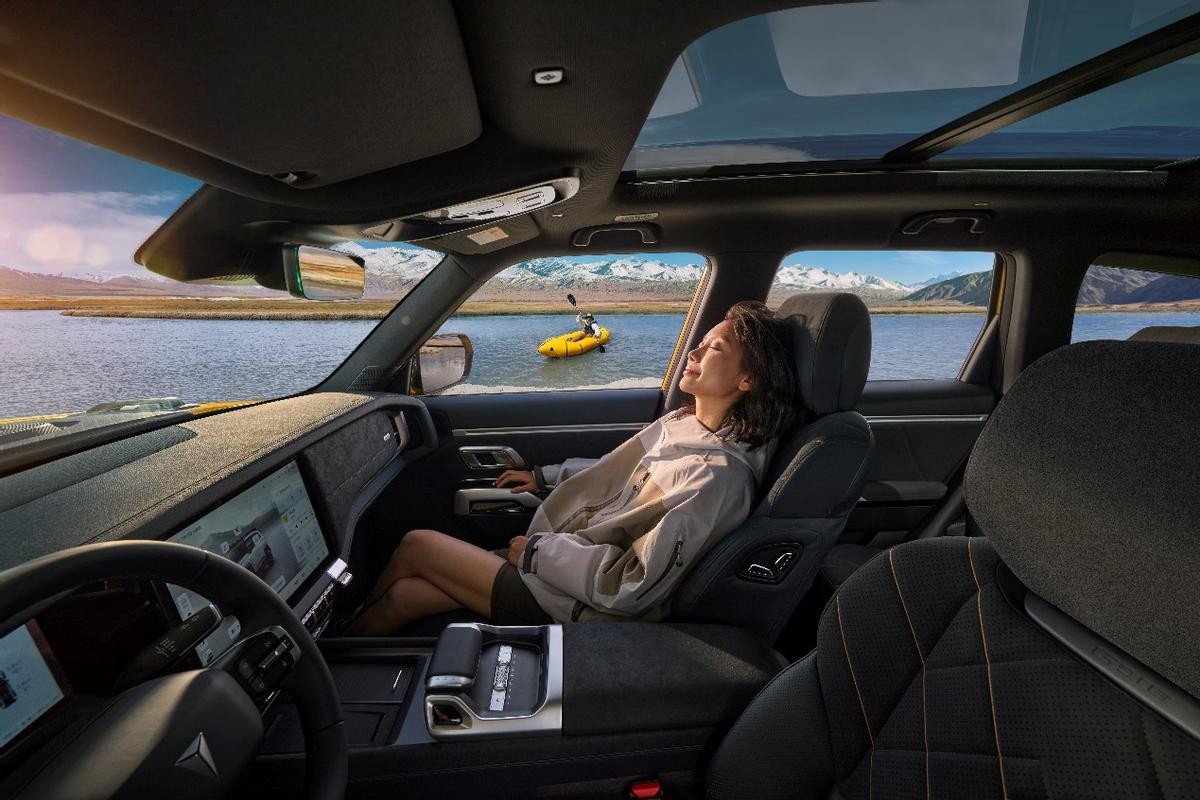 在越野性能出色的同时,深蓝G318无忧穿越版在内饰配置和舒适度方面也下足了功夫。新车采用了高奢座舱设计,搭载了百万豪车级别的探享内饰,后排座椅配备通风加热按摩功能,类麂皮面料触感细腻且质感十足。此外,新车还配备了幻彩氛围灯与超现场音响系统,让长途穿越之旅不再单调乏味。在静谧性方面,深蓝G318无忧穿越版同样表现出色,太空级的静谧表现让驾乘者在疾驰中也能享受到安宁与放松。
