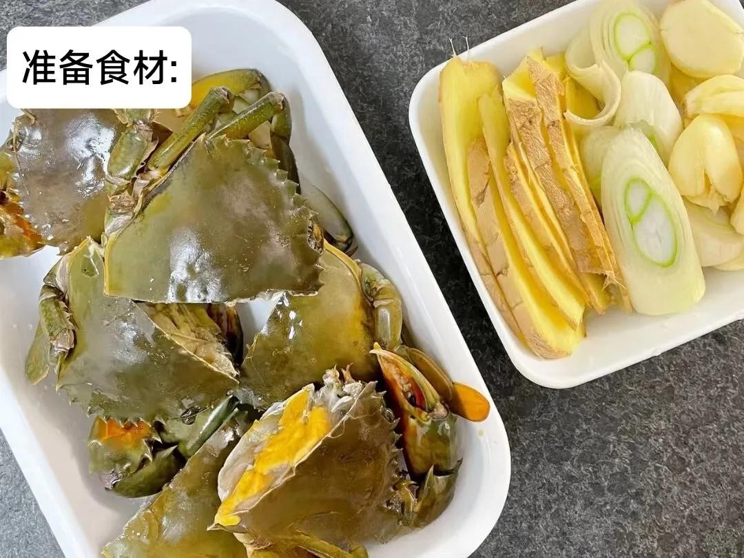 材料:大螃蟹、盐、黑胡椒粉、干辣椒、葱姜蒜末。