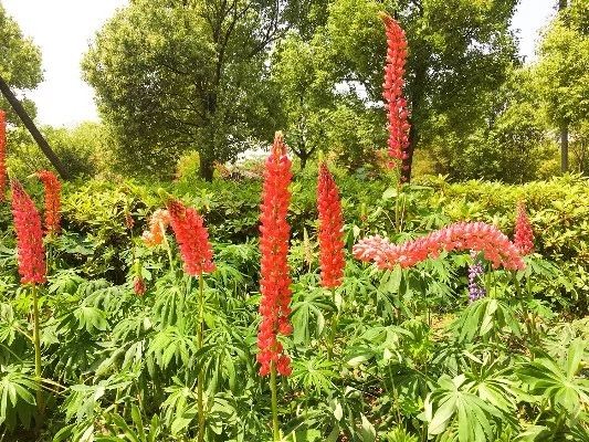 在武汉园博园,鲁冰花位于天津园对面,丽江园桥头也有部分。鲁冰花颜色艳丽,满花绽放时就像一个个美观的小宝塔。今年是园博园第一次种植鲁冰花,花色以大红和粉色为主,最大的一株花序接近40厘米。