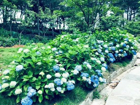幽静的树林下绽放着百万株绣球花,它们有一个极为浪漫的名字——“无尽夏”。粉蓝色、粉紫色、淡白色等各种颜色的花球团团相拥,生长在林深树密的山坡,花木结合形成独特的林下花海,成为网红、情侣的打卡地。