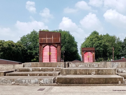 唐大明宫崇明门遗址。唐时太子常从这里出入,拜见老师。大臣谒见太子都在崇明门进行。太子被册封后,也在此接受文武百官及幕僚的朝贺。