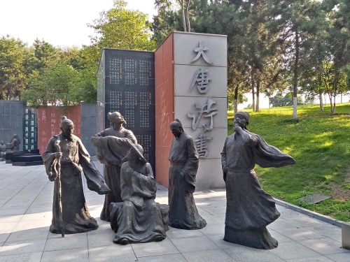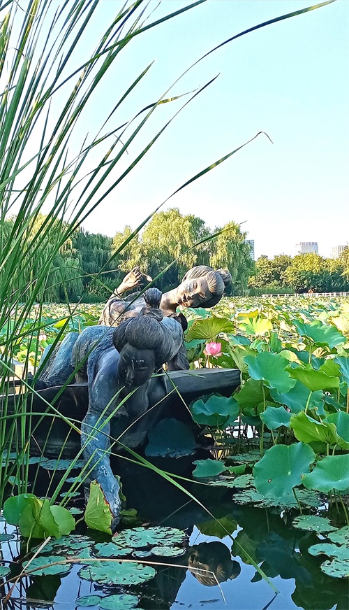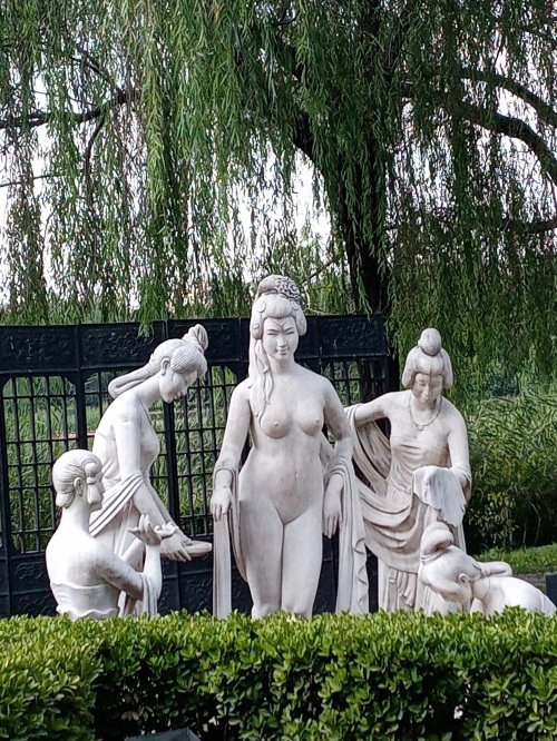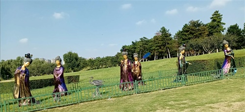 太液池周围大唐侍女图群雕。(全景头拍摄)