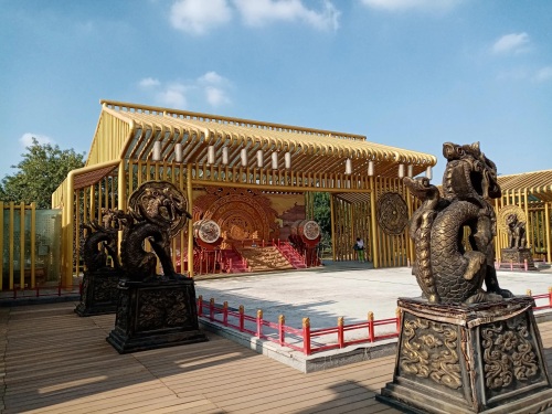 大明宫是唐长安城“三大内”(太极宮、大明宫、兴庆宫)中最为富丽堂皇的建筑群。你现在可以从缩微景观中看到当年的气象。大明宫遗址公园目前占地面积近四平方公里。中轴线为南北走向:丹凤门—含元殿—宣政殿—紫宸殿—玄武门—重玄门,可分为殿前、宫殿、宫苑三大区域。