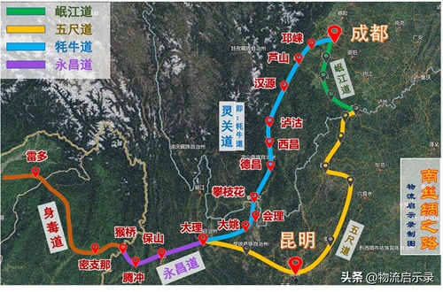 如果往远了追溯的话,这条通道可追溯至两千年前的南丝绸之路,也就是“蜀-身毒道”。看图:
