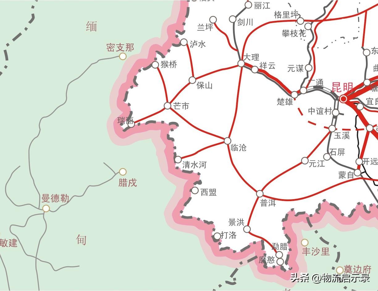 云南边境铁路规划图(图片来自我国中长期铁路规划,侵删)