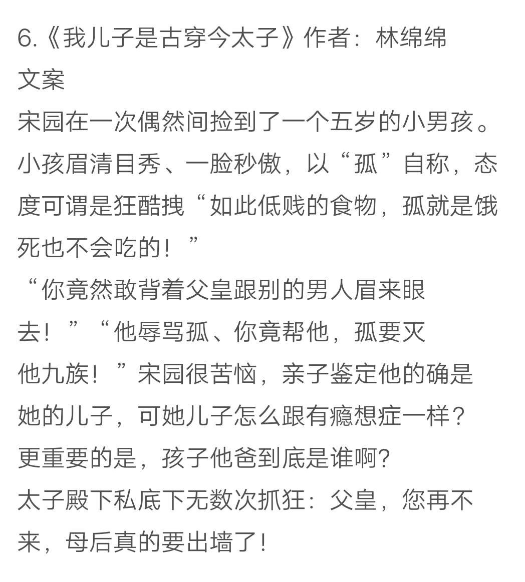 个人感受:我超喜欢这本书,这本书走的主要是女主与自己儿子之间的亲情线,与儿子之间的趣味互动。当然还有女主与自己父母之间的亲情,与男主之间的感情线比较少。女主之前身穿古代,再穿回现代来了,但她失去了这段记忆,全文也比较少介绍。