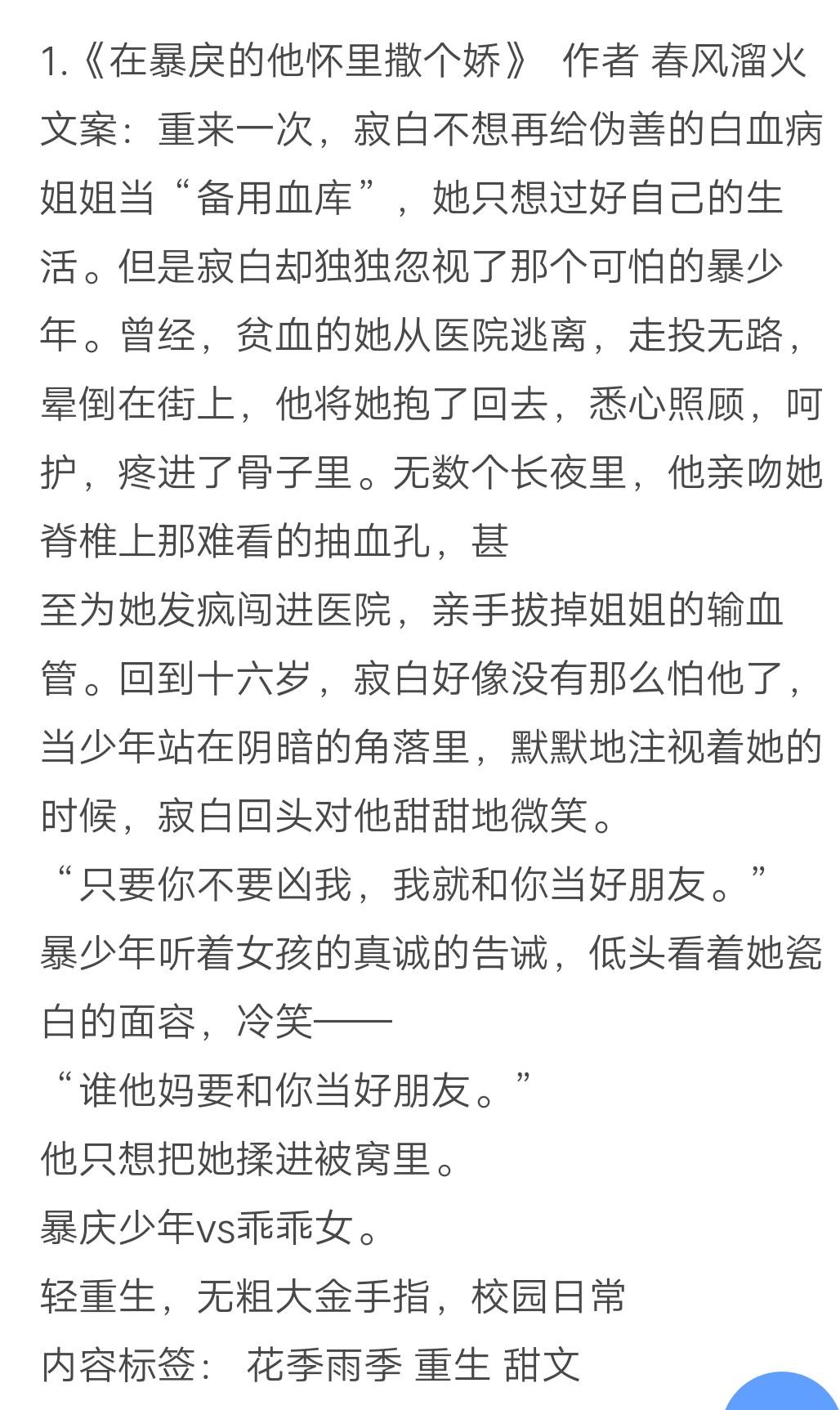 个人感受:重生甜宠文 ,就是从头来一次,报复回上一世对待她不好的人,最后与男主一起走上人生巅峰的故事。