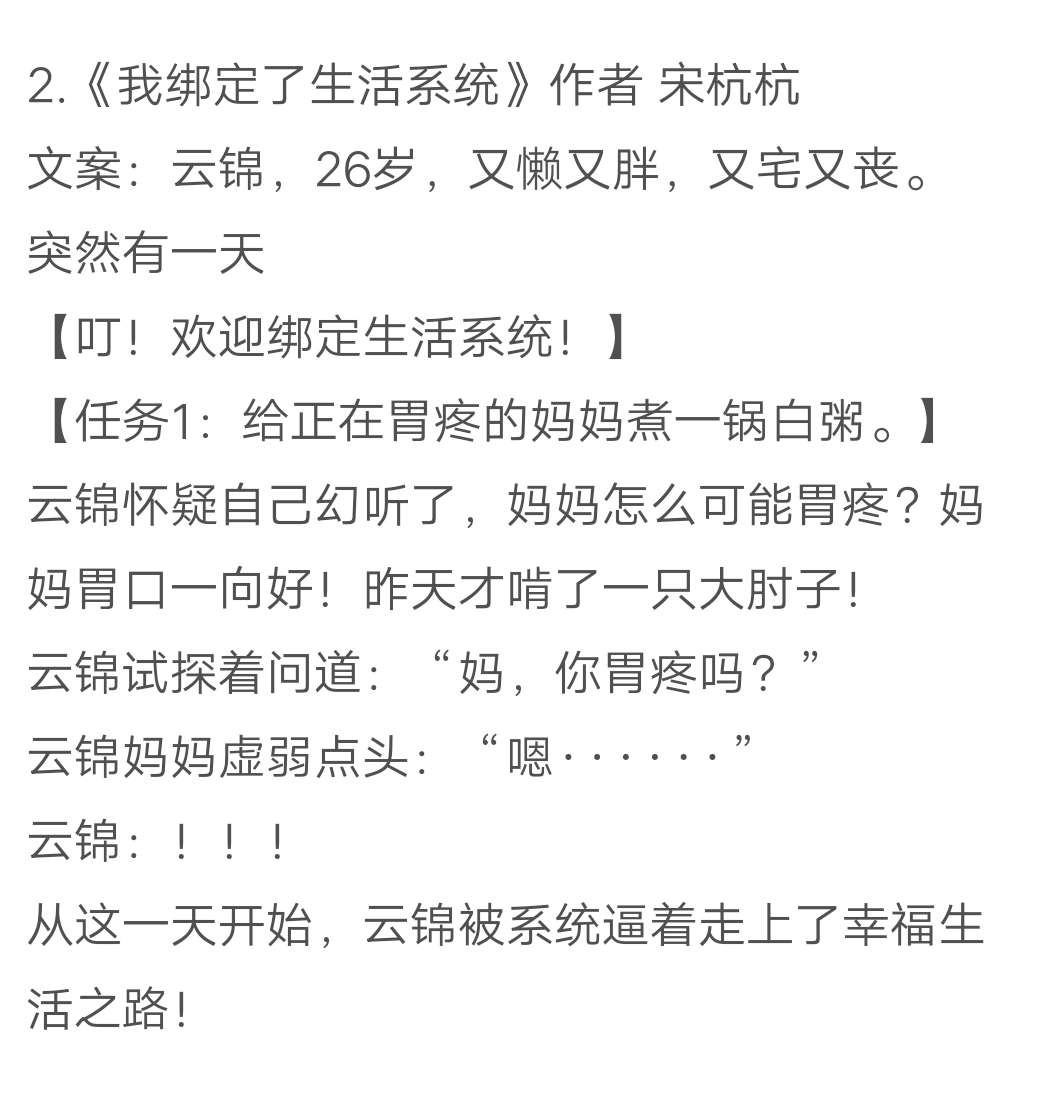 女主原本是一条咸鱼,生活得过且过, 但有一天下载了一个软件,绑定了一个系统,每天必须完成系统里面的任务,慢慢地幸福感大大加强了,自己也变得越来越优秀,开了一家淘宝店,成为了合伙人,并且嫁给了同样优秀的男主。