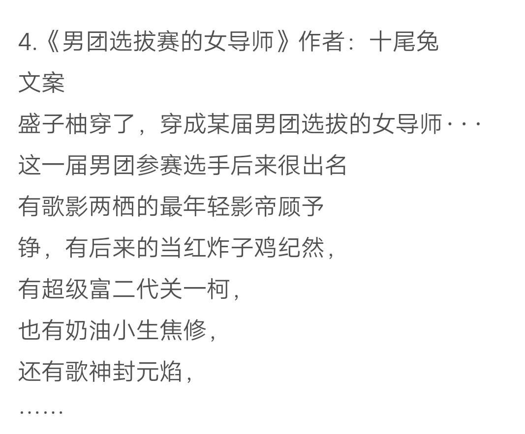 个人感受:女主车祸身故后,穿成了男团选拔赛的女导师。性格乐观霸气的女主在和学员们相处中,证明了自己的实力,最终成为前途无量的女星,并收获爱情。