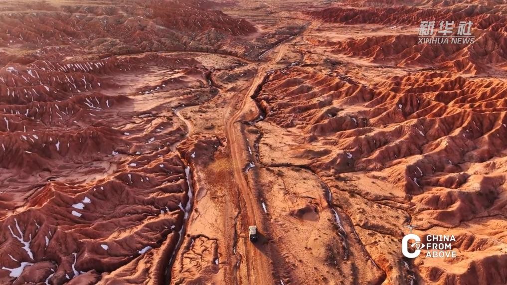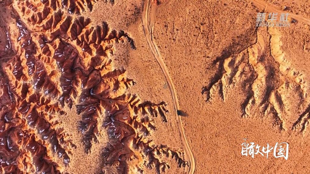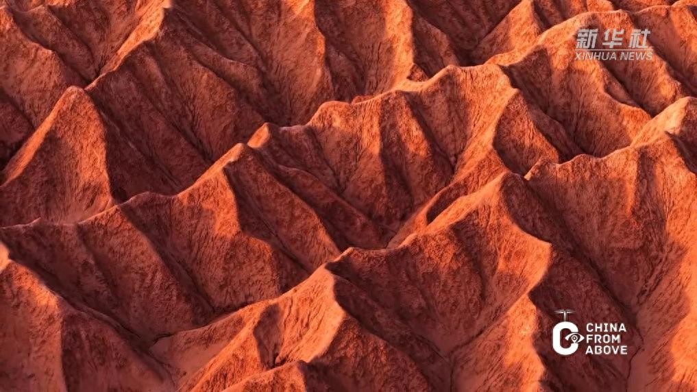 内蒙古鄂尔多斯市杭锦旗巴拉贡镇东南方向,一片赤色土地在荒漠中蜿蜒,由砂质土状块体构造的褶皱大地,仿佛置身于火星,来了一场“星际穿越”。