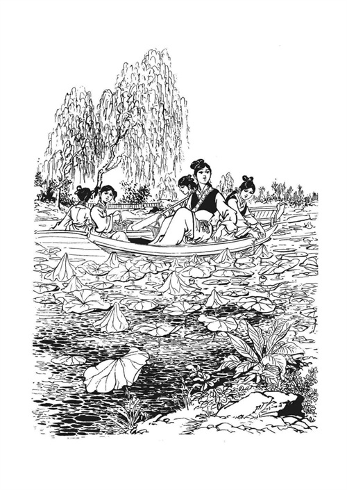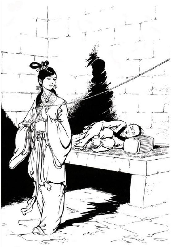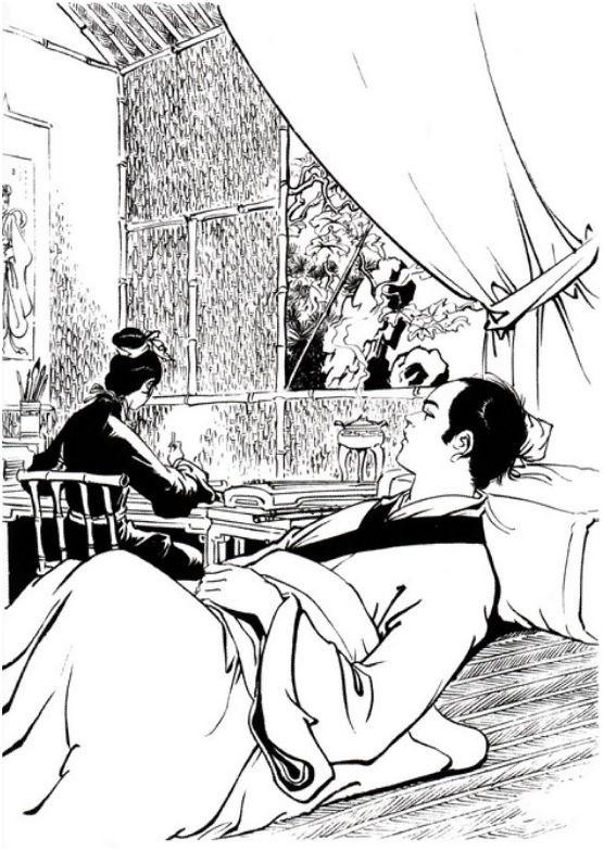 转头只见窗边一个青衫少女左手按纸,右手握笔,正自写字。她背面向榻,瞧不见她相貌,但见她背影苗条,细腰一搦,甚是娇美。
