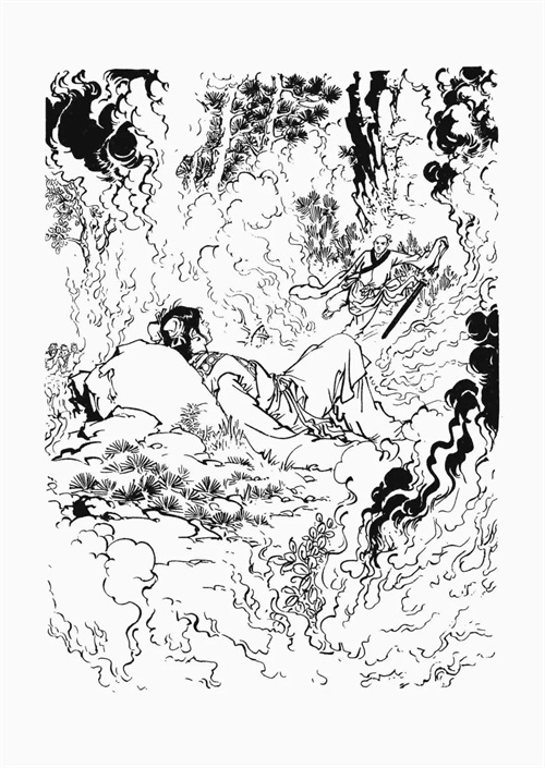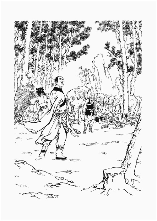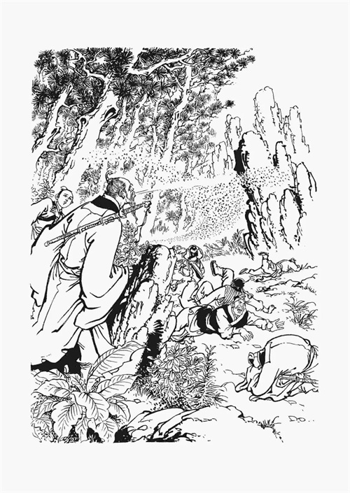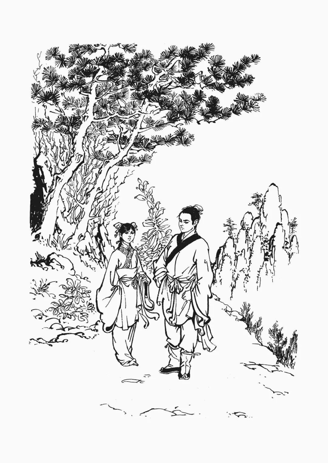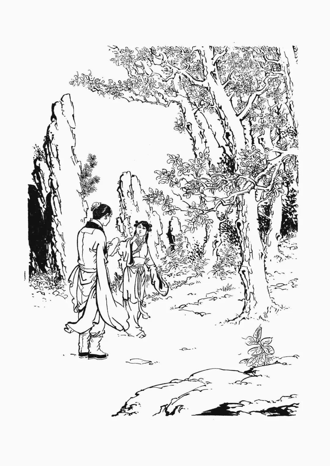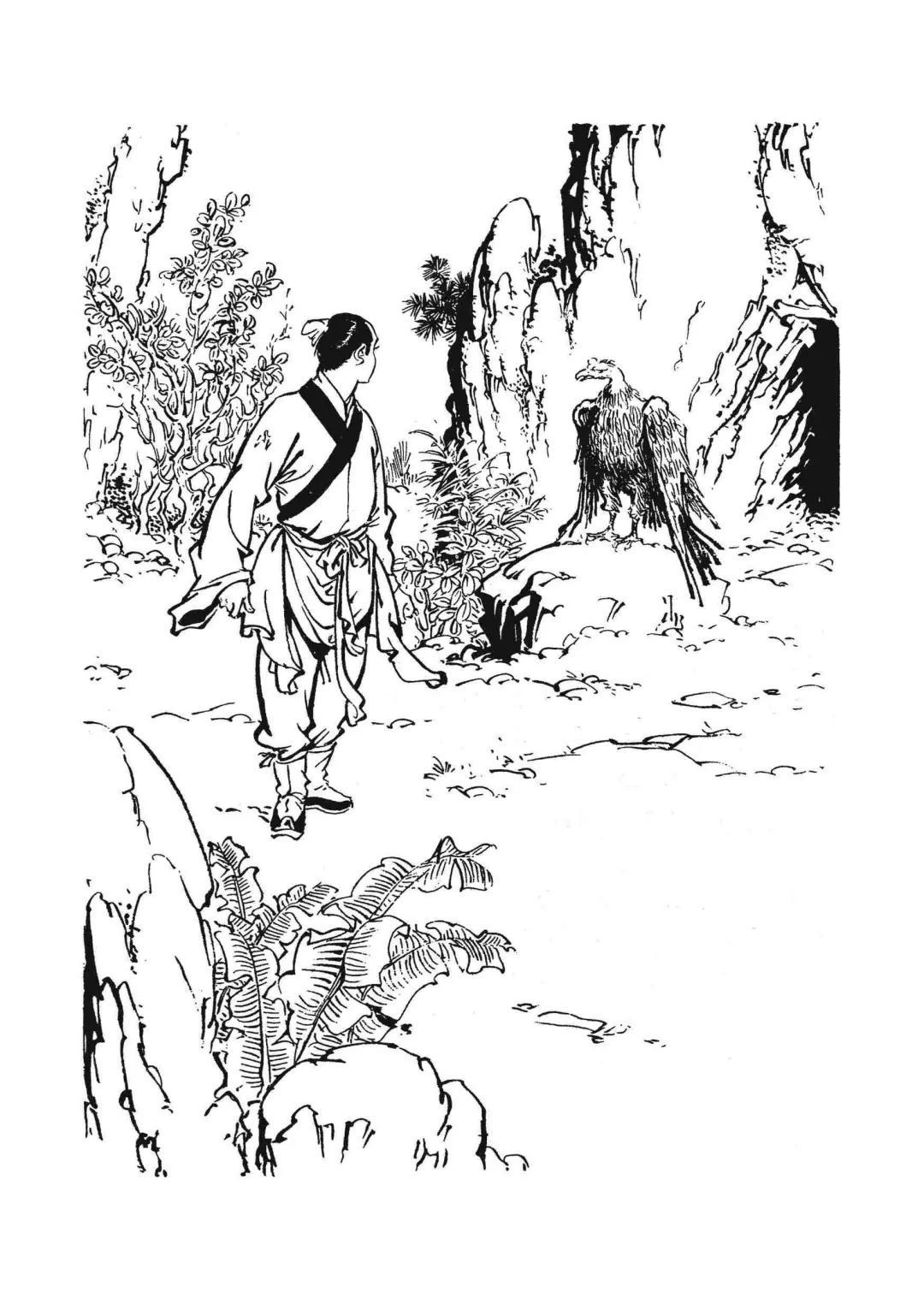 杨过朗声说道:‘今番良晤,豪兴不浅,他日江湖相逢,再当杯酒言欢。咱们就此别过。’说着袍袖一拂,携着小龙女之手,与神雕并肩下山。