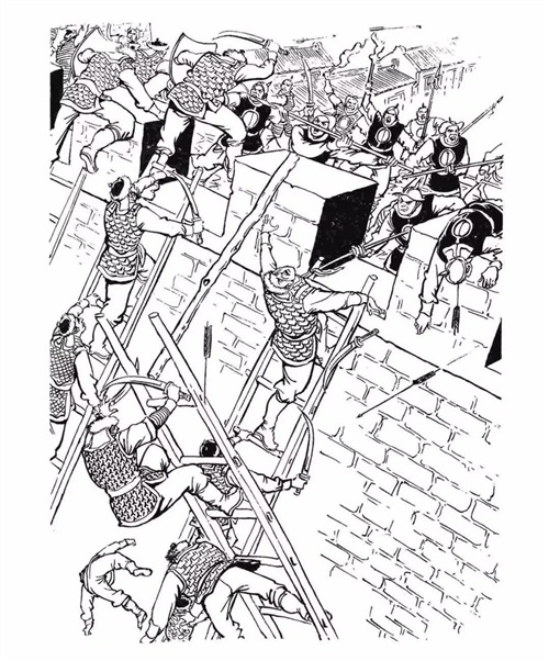 城上城下大呼声中,城头闪出一队勇壮汉子,长矛利刃,向爬上城墙的蒙古兵攻去。这队汉子不穿宋军服色,有的黑色短衣,有的青布长袍,攻杀之际也不成队 形,但身手矫捷,显然身有武功。
