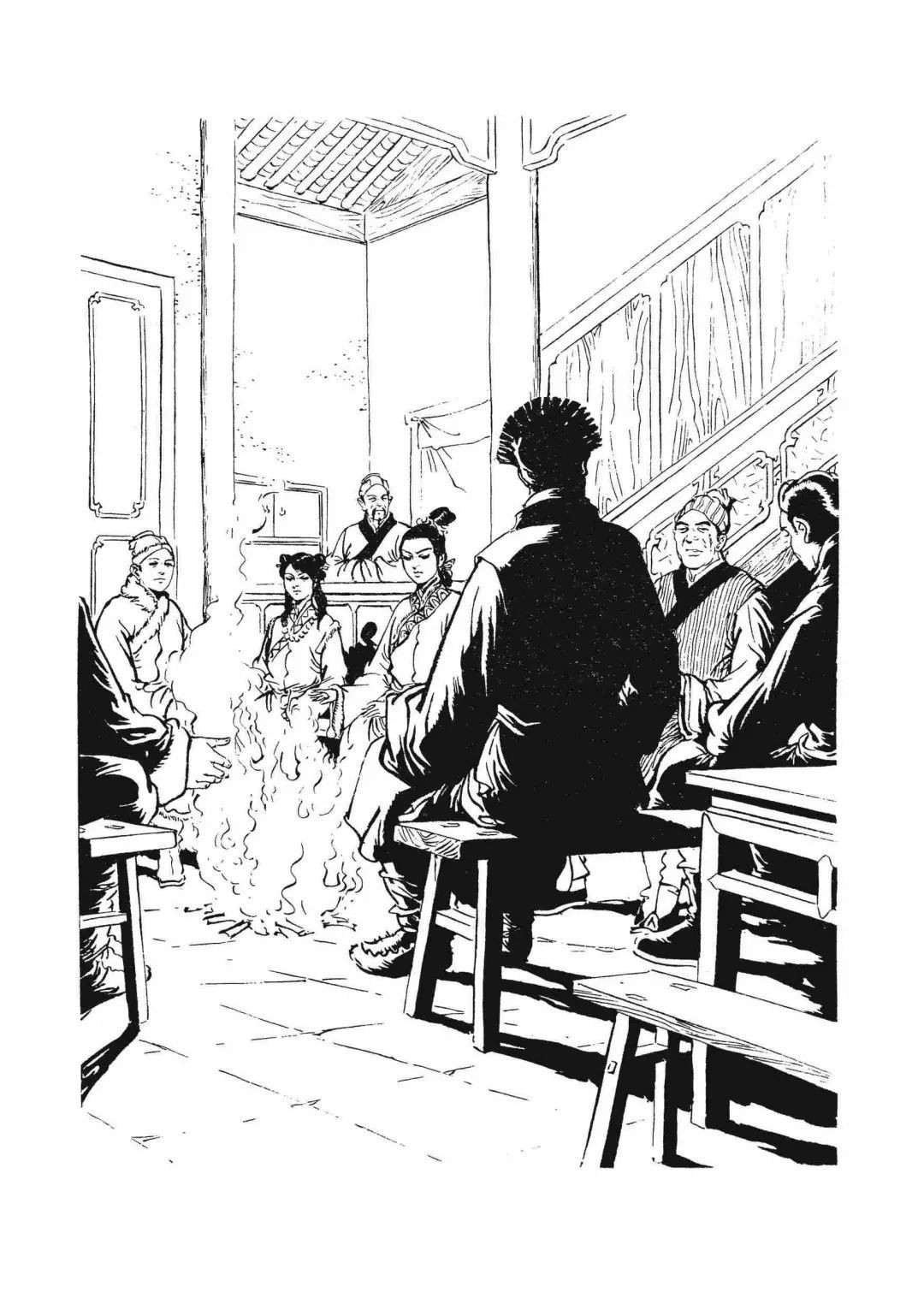 风陵渡的客店中,郭芙、郭襄、郭破虏三姊弟坐在火堆旁烤火,听众客述说神雕侠的种种豪侠义举。郭襄悠然神往,只盼能见一见这位神雕大侠。