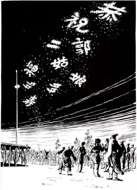 西山一窟鬼各放一个烟花,组起来是‘恭祝郭二姑娘多福多寿’十个大字。十字颜色各不相同,华丽繁复,妙丽无方,高悬半空,良久方散,群豪欢呼喝彩。