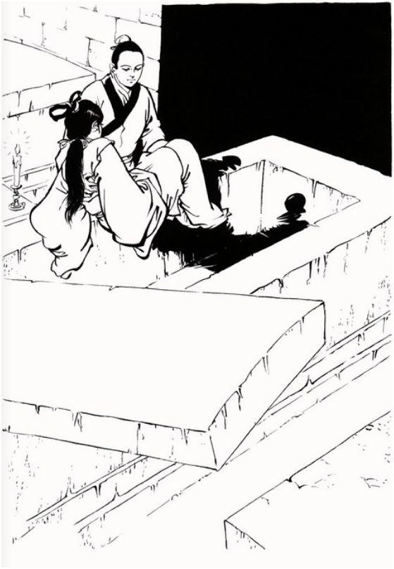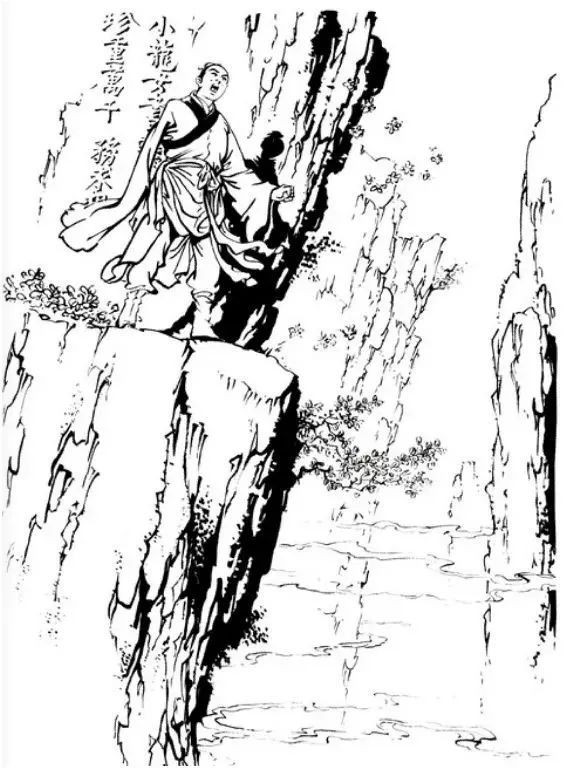 杨过双手抓着绳索,交替上升,低头向下望去,只见裘千尺和绿萼母女俩在暮色朦胧中已成为两团小小黑影。