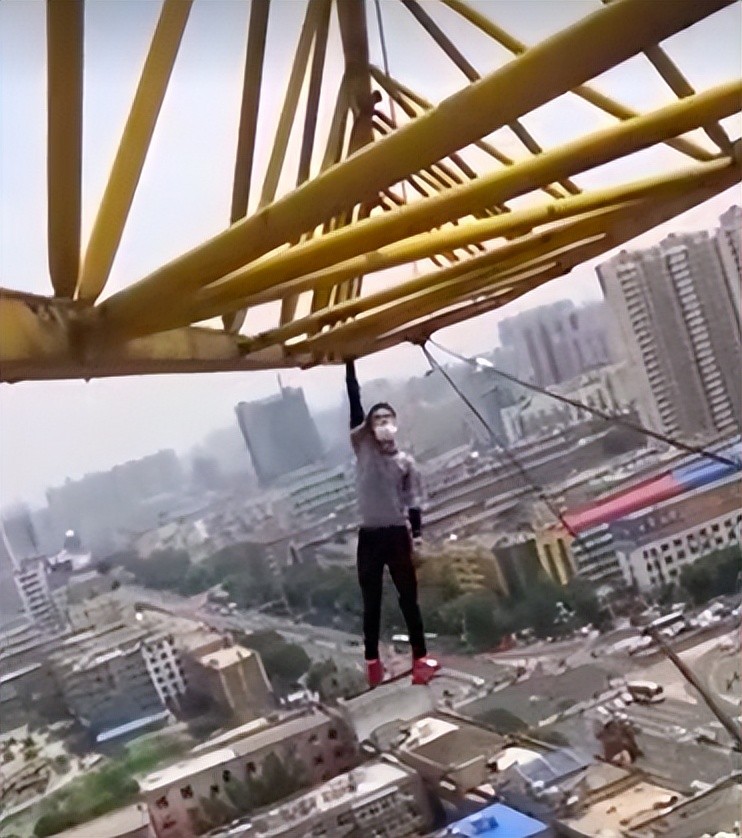 其中最令人印象深刻的是他在长沙国金楼顶演绎的"猴子观海":单手抓住楼顶的护栏,整个身体悬空于一臂之上,另一只手还在眼前搭起遮阳棚。