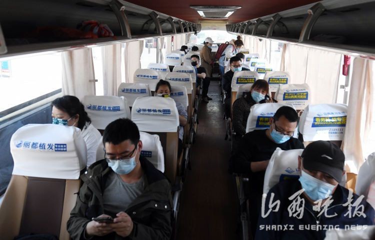 5月16日,太原建南汽车站复工后,已开通阳泉、平定、昔阳、左权、和顺、陈家庄、府谷郭家湾、平遥8条线路,在做好防疫管控的情况下,乘客们有序乘车。