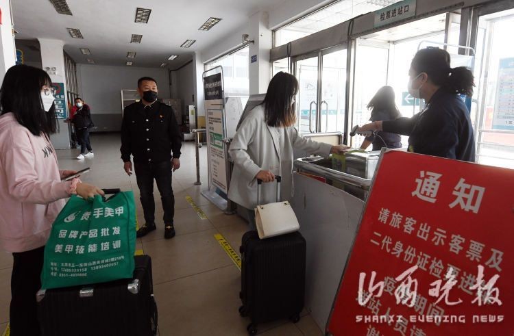 进站旅客需测温、验码(行程卡、健康码、场所码)、太原市旅客需提供5日内核酸阴性证明、其他中高风险地区48小时核酸阴性证明、全程佩戴口罩、保持“一米线”安全距离进站、持二代身份证实名购票。同时长途汽车还对每位乘客进行个人信息登记,向抵达地车站报备。