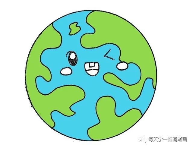 每天学一幅简笔画--彩色地球简笔画的画法步骤