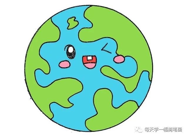 步骤五:最后给嘴巴里涂上粉色和舌头、红色和口腔,两个小脸蛋也涂上粉色,简单的地球简笔画就画好了。