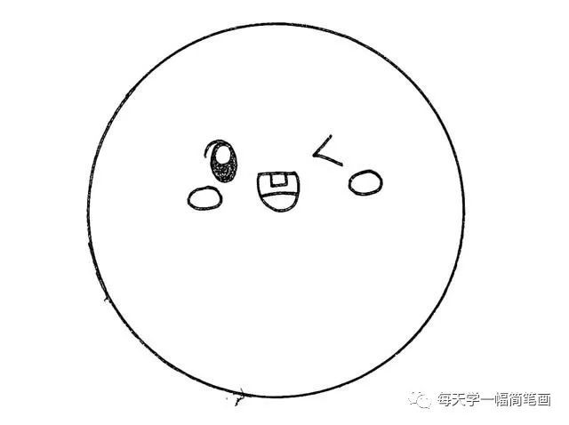 步骤二:然后在圆形的中间靠上的方向画上一个半圆形的嘴巴和眼睛