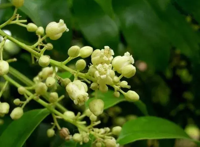 花白色,花梗长2-3毫米,被微柔毛;萼片阔卵形或椭圆状卵形,长3.5-4毫米,宽约2毫米,先端钝,两面被灰黄色微柔毛,花瓣披针形或狭长圆形,长约6毫米,宽约1.7毫米,无毛,芽中先端彼此粘合,开花时外卷,具3-5条暗褐色纵脉;花丝线形,无毛,长约3.5毫米,花药长圆形,长约1.5毫米;花盘无毛,边缘浅波状;子房无毛,长2.5-3毫米,花柱短,长约2毫米。核果扁球形,长约2厘米,径约2.5厘米,成熟时黄色,果核压扁,径1.7-1.9厘米,上面盾状凹入,5室,通常1-2室不育;种子3-4颗。
