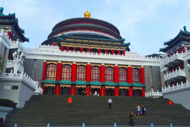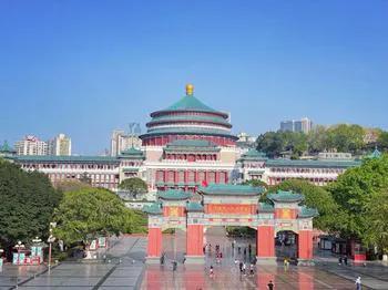 重庆市人民大礼堂,原名叫西南军政委员会大礼堂,1954年西南军政委员会撒消后改称重庆市人民大礼堂。1951年初,驻地于重庆的西南军政委员会在刘伯承、邓小平、贺龙等几位首长的主持下做出了一个决定:面向全国广泛征集设计方案,为重庆建造一座可容纳千人以上的大礼堂及其附设的招待所。