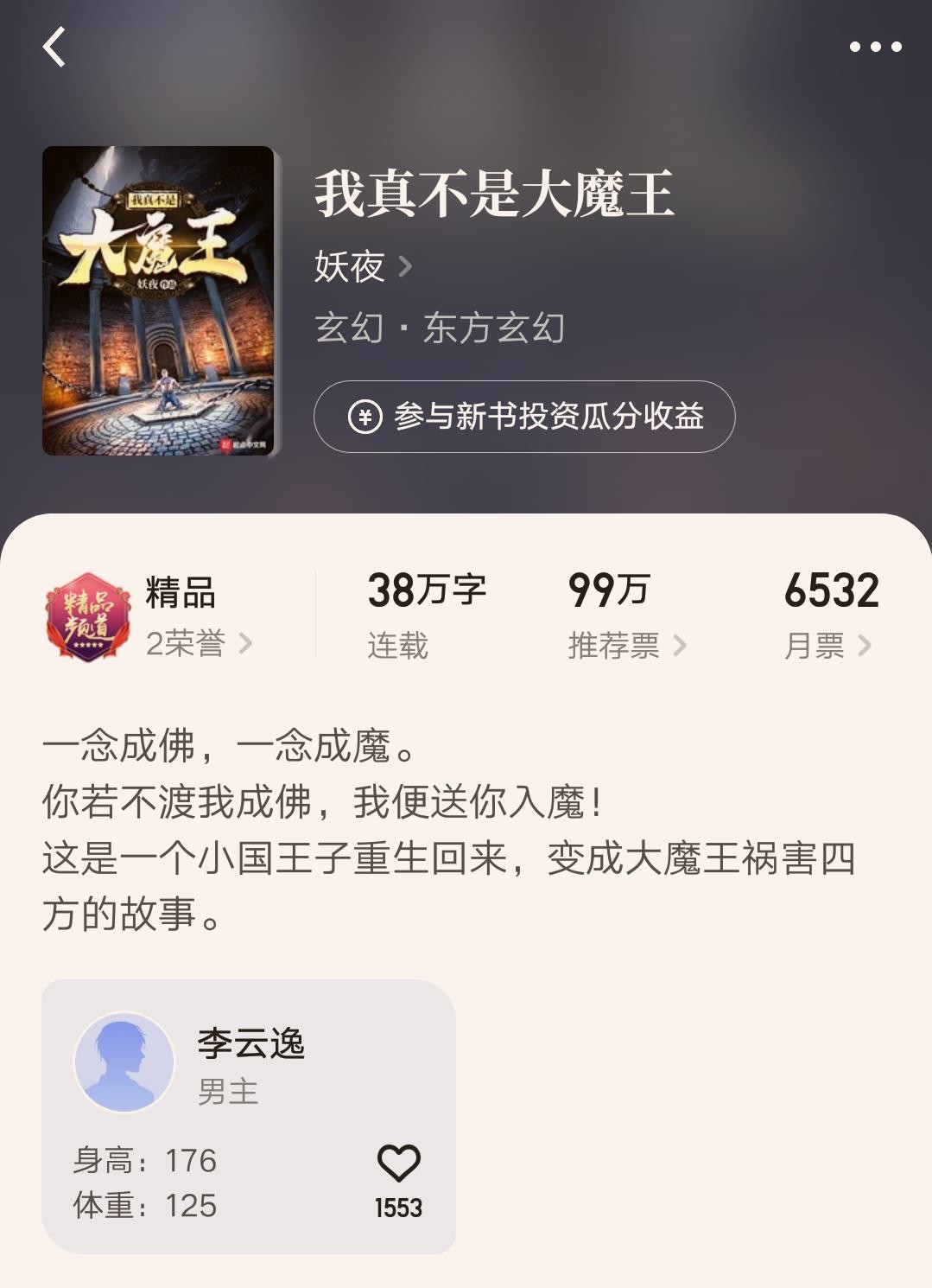 另外,妖夜可是个玄幻小说的资深作者。他对于玄幻小说的创作有着自己的见解和感悟。他笔下的小说文笔流畅,少有水文,值得拜读!