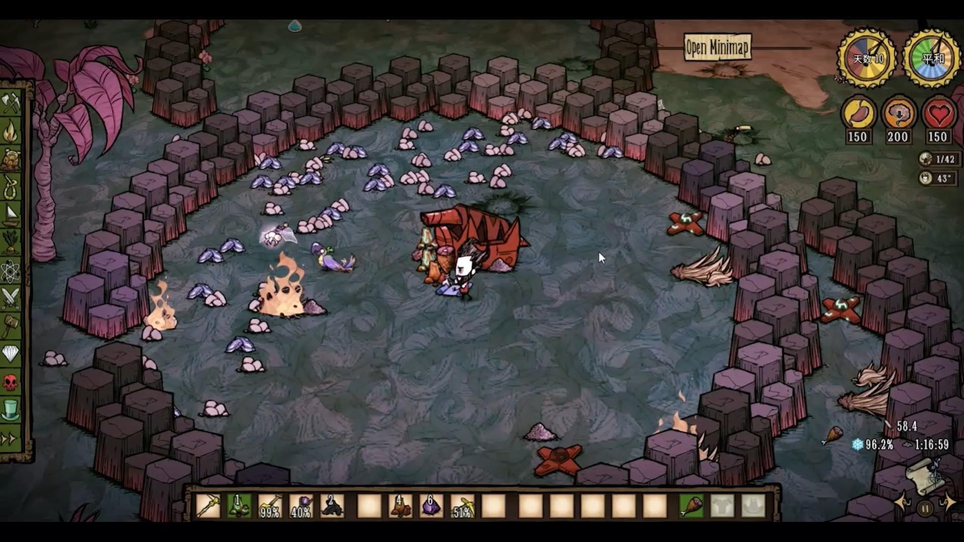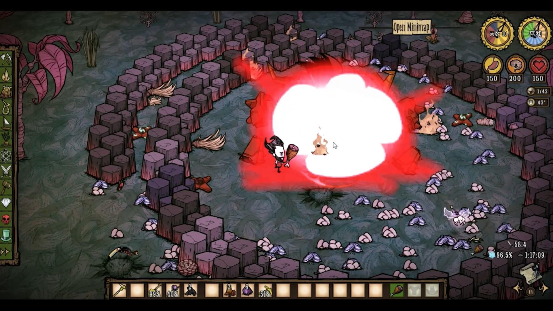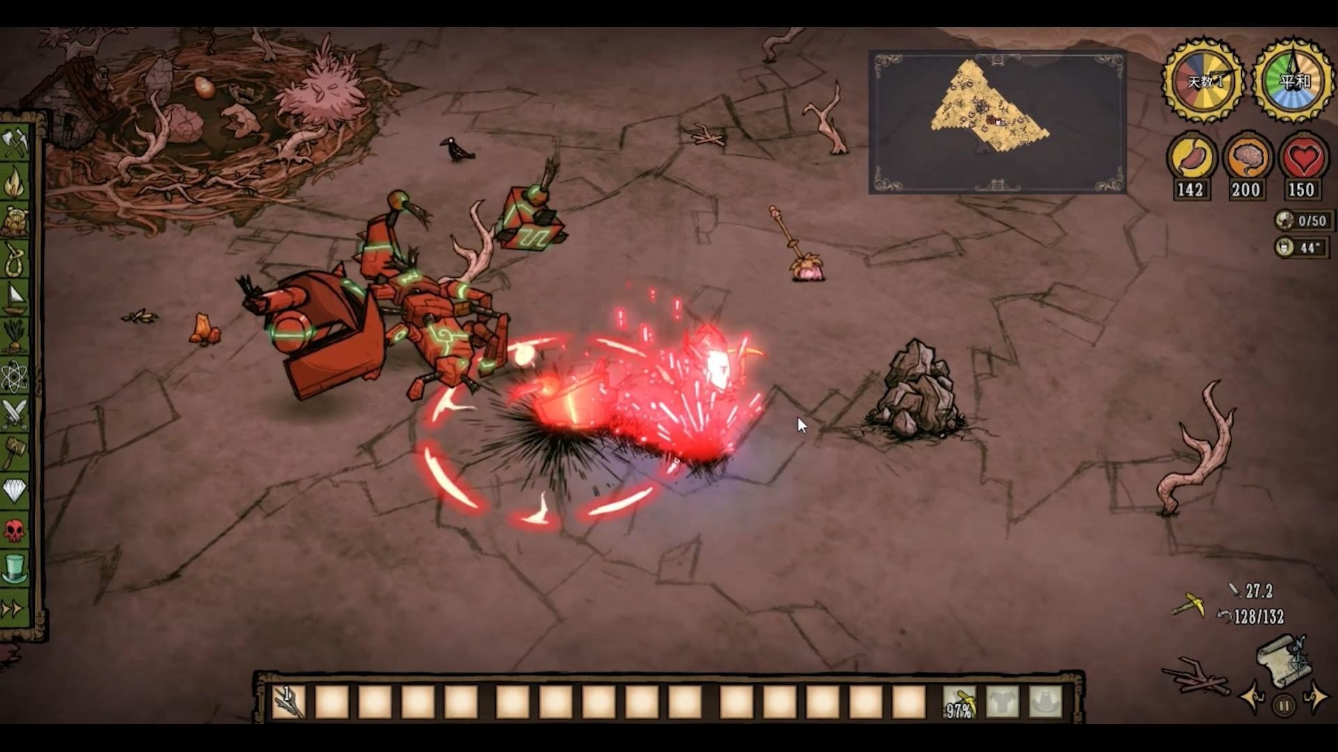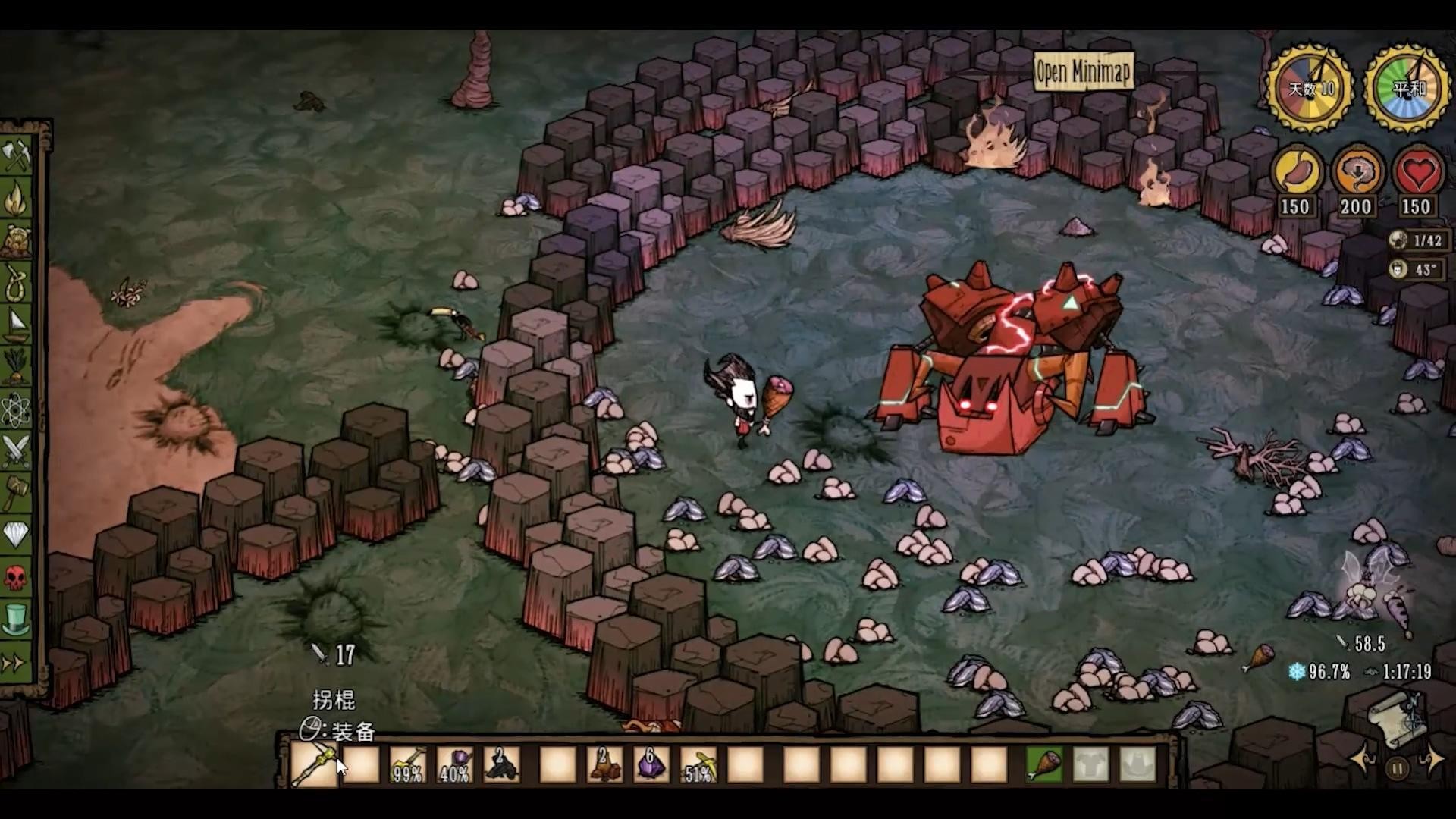 它还能猛击地面造成160的伤害,并在周围形成一圈玄武岩困住玩家。玩家可以利用这一点来刷石头。
