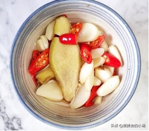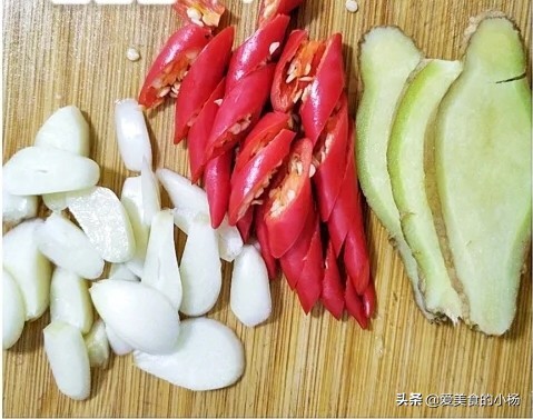 4、蒜、小米椒、姜切片