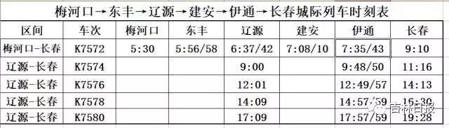 为方便旅客出行,自2017年10月1日始发站起,长春—辽源间加开K7571、K7575次,长春—梅河口间加开K7579次,辽源—长春间加开K7574、K7578次;自2017年10月2日始发站起,梅河口—长春间加开K7572次,辽源—长春间加开K7576、K7580次,长春—辽源间加开K7573、K7577次管内快速旅客列车。