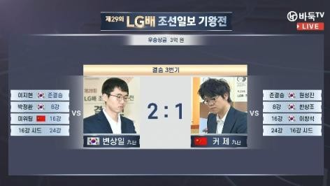 值得一提的是,虽然卞相壹的成绩是2胜,但实际上这两胜全部是因为柯洁被罚所得。三局棋中,唯一完赛的只有第一局,在那局棋中,柯洁执黑以2.5目获胜。