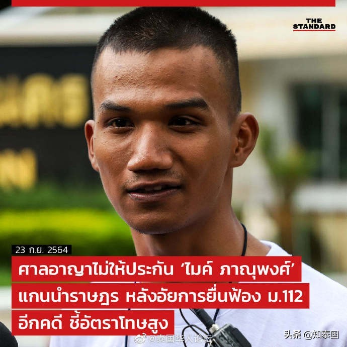 泰国抗议领袖迈克被指控“冒犯君主罪”法院拒绝保释