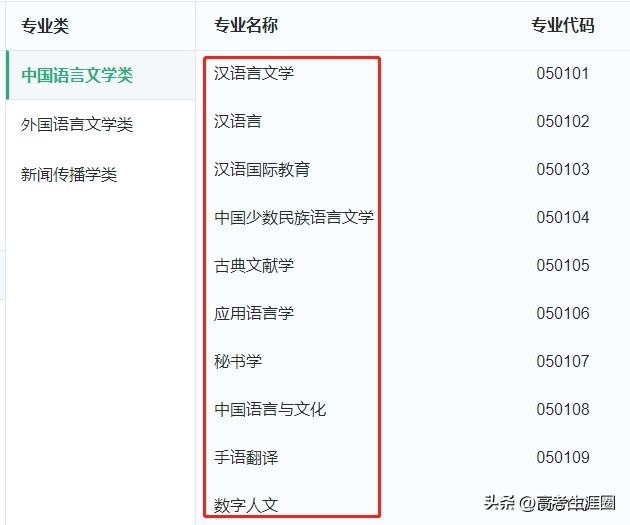 中国语言文学是中国大学史上最早开设的专业之一,出现于19世纪末,新中国成立后,又逐渐得到了很大发展,其包括语言和文学两个大的方向,是中国人文科学不可或缺的组成部分。根据最新发布的《普通高等学校本科专业目录》,目前中国语言文学类包含汉语言文学、古典文献学、应用语言学10个专业,如下所示: