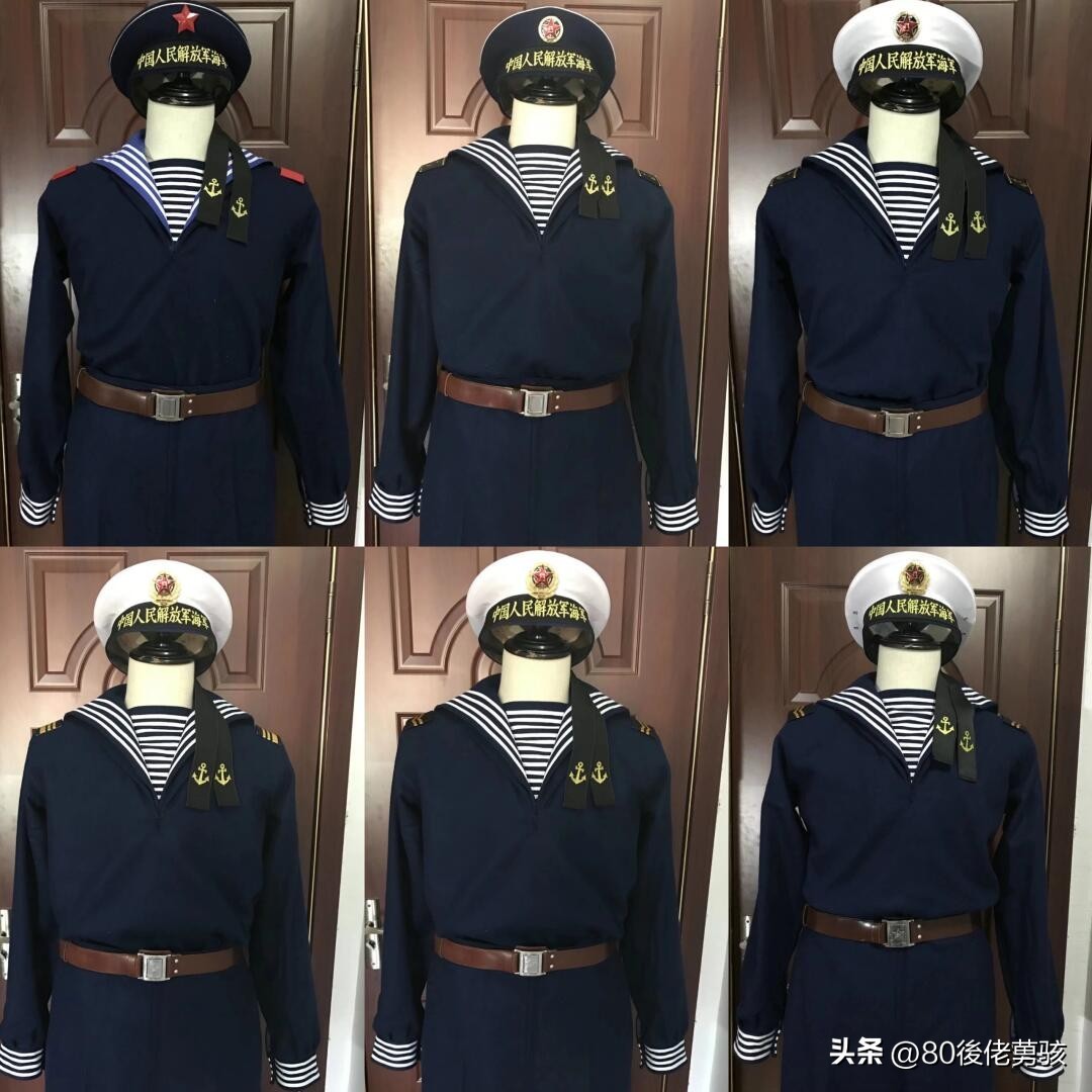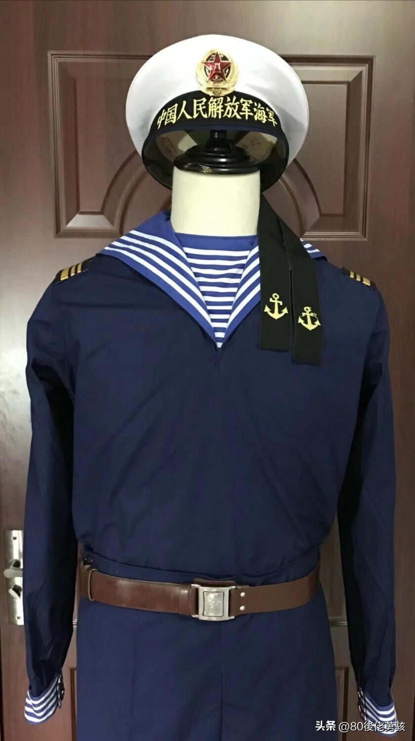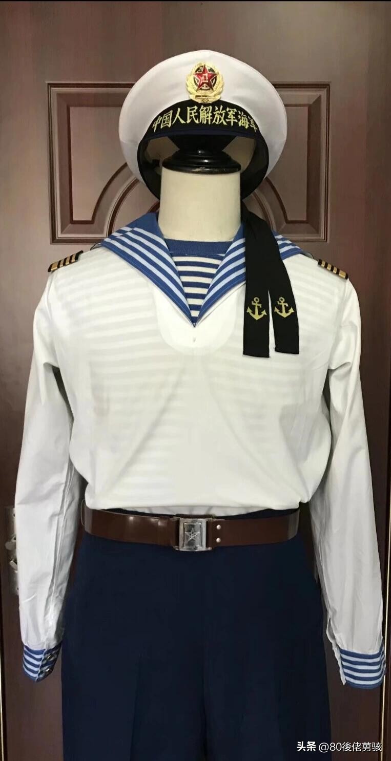 而我国海军开始使用水兵服的历史,要从清朝宣统10年(1909年)开始,其大体样式便为套头式的水兵服,后先后历经1951年、1955年、1974年、1988年、2004年至2007年式军服的水兵服,虽然各个时期的水兵服在袖头颜色、用料、帽墙字体、扣子、飘带及肩章样式上略有不同,但总体上仍沿用着最初水手服的原始设计思路,在我人民解放军的军服装备史上留下了厚重的一笔……