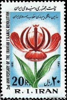 虽然伊朗的国花是蔷薇(即大马士革玫瑰),但是伊朗伊斯兰革命的象征则是郁金香,也许这次革命也可以称为郁金香革命(2005年吉尔吉斯斯坦发生的政治动荡也被称为郁金香革命),因此,1981年,纪念伊朗伊斯兰革命2周年邮票即以郁金香为主题,而张开的郁金香花朵与国徽巧妙的结合在一起,这个设计是很有创意的。