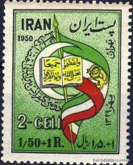伊朗作为伊斯兰国旗,于1950年举办了第2届伊斯兰大会,纪念邮票上是一面国旗及一本打开的《古兰经》。