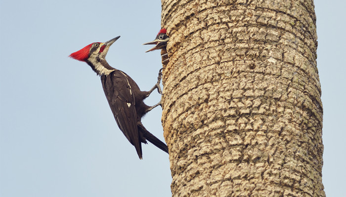 它是常见的留鸟,在中国分布较广的种类有绿啄木鸟和斑啄木鸟。啄木鸟是着名的森林鸟,除消灭树皮下的害虫如天牛幼虫等以外,其凿木的痕迹可作为森林卫生采伐的指示剂。它们觅食天牛、吉丁虫、透翅蛾、蝽虫等有害虫,每天能吃掉1500条左右。