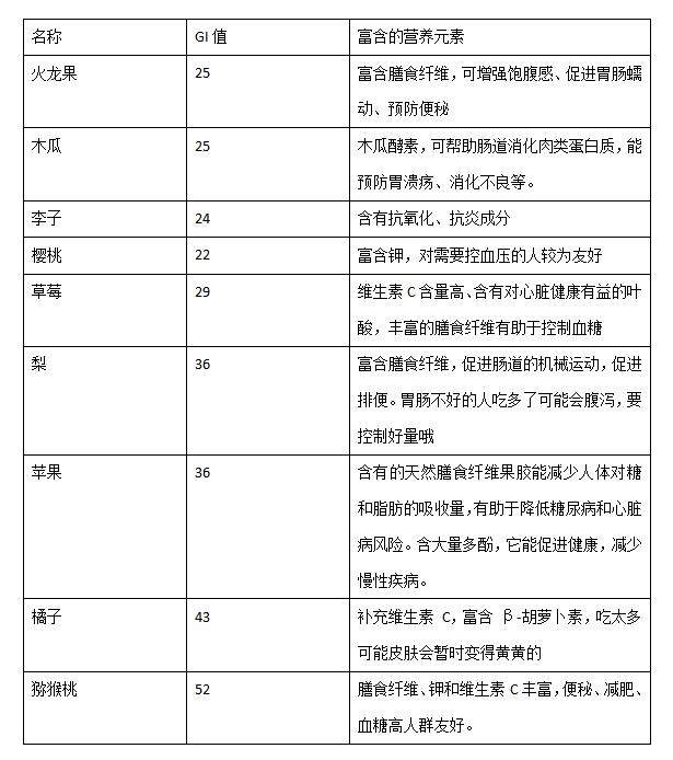 二是要尽量选择低GI(GI值<55为低GI食物)的水果,除了柚子,还有木瓜、火龙果、苹果、李子、樱桃等。