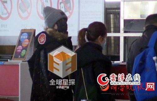 全副武装的华晨宇与邓紫棋正在办理手续。
