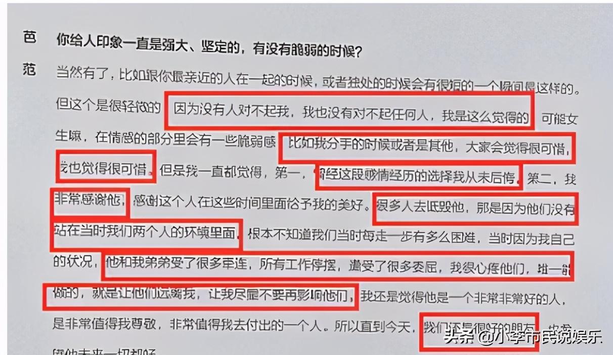范冰冰在谈到自己有没有脆弱过的时候,提到了和李晨分手的原因!范冰冰当年和李晨并不是在自己偷税漏税问题被爆出后第一时间就选择分手的,而是在2025年范冰冰首先在微博中公开与李晨分手的消息,随后李晨也回应了分手,两个人分手很平淡,而且分手后还被拍到在一起吃饭。当时两个人分手一直被认为是假分手,因为李晨和范冰冰的感情非常好,分手也没有什么原因公开说出来!