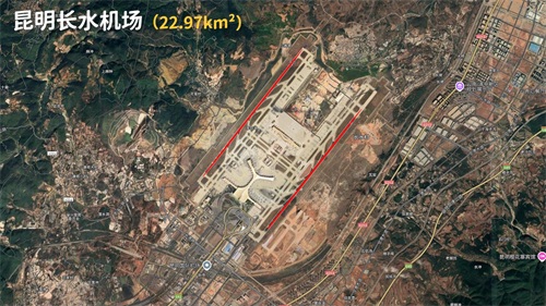 最后再来说说我国机场面积排名第五的,昆明长水机场面积22.97平方千米,虽然它只有两条跑道,但它却是我国面向东南亚、南亚和连接欧亚的国家门户枢纽机场。截至2023年,长水机场的旅客吞吐量达到了4203.3527万人次。