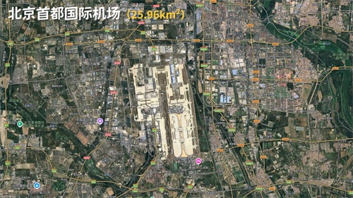 接下来是机场面积排名第二的机场,北京大兴国际机场,占地面积26.98平方千米,共拥有3条跑道和全球最大的单体航站楼,航站楼面积78万平方米。截至2024年11月7日,大兴机场今年已累计完成旅客吞吐量10005.9万人次。