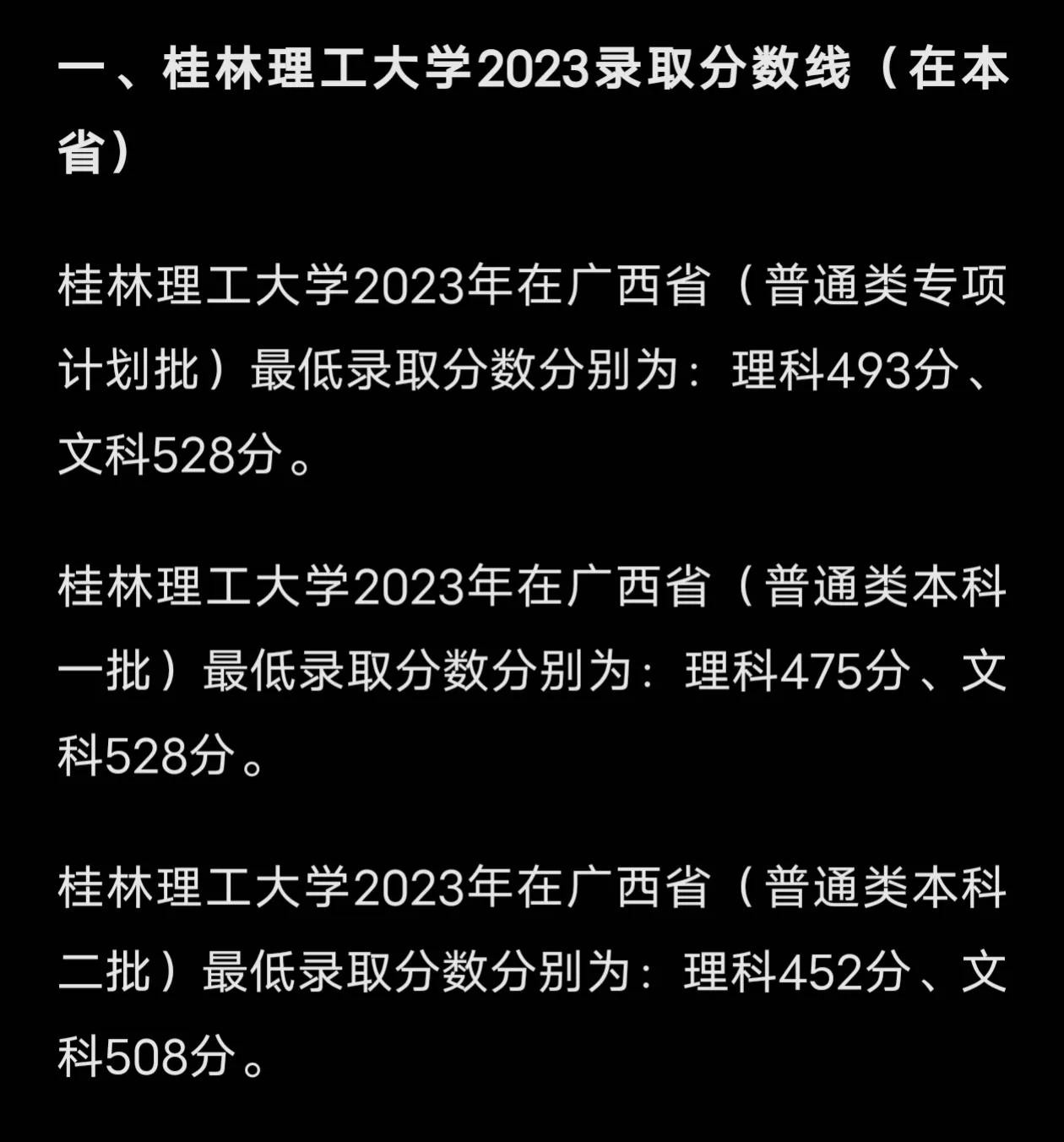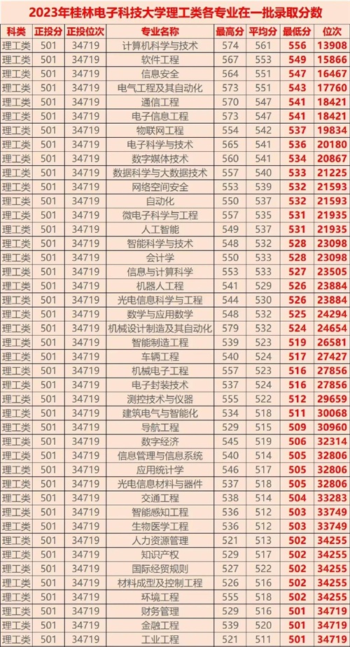 2023年桂林电子科技大学在广西的文科录取分数线为528分,理科录取分数线为501分,具体情况如下图: