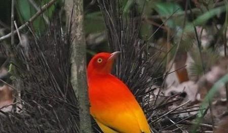 花亭鸟会在繁殖季节,在地面上用树枝建造各式各样的房子,并且还要用野花装饰这些房子,雌鸟会对这些房子进行比较,挑选自己喜欢的,一旦被挑中雄鸟就可以抱得美人归了。